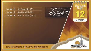 Masjidul Quds Live Taraweeh Night 12 - Ramadan 1447/2026