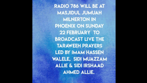 Masjidul Jumuah Milnerton - LIVE TARAWEEH BROADCAST WITH RADIO 786 | 22 FEBRUARY 2026